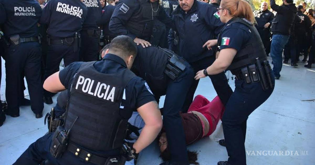 Mexicali, B.C. Elementos de la Dirección de Seguridad Pública Municipal (DSPM) se enfrentaron a golpes y empujones con un grupo de manifestantes que impidieron el acceso de trabajadores burócratas al Palacio Municipal de Mexicali, como parte de las manifestaciones que se han registrado desde el mes de enero para exigir la disminución del pago del impuesto predial, la reducción del sueldo del alcalde y la eliminación del pago por derecho al alumbrado público.