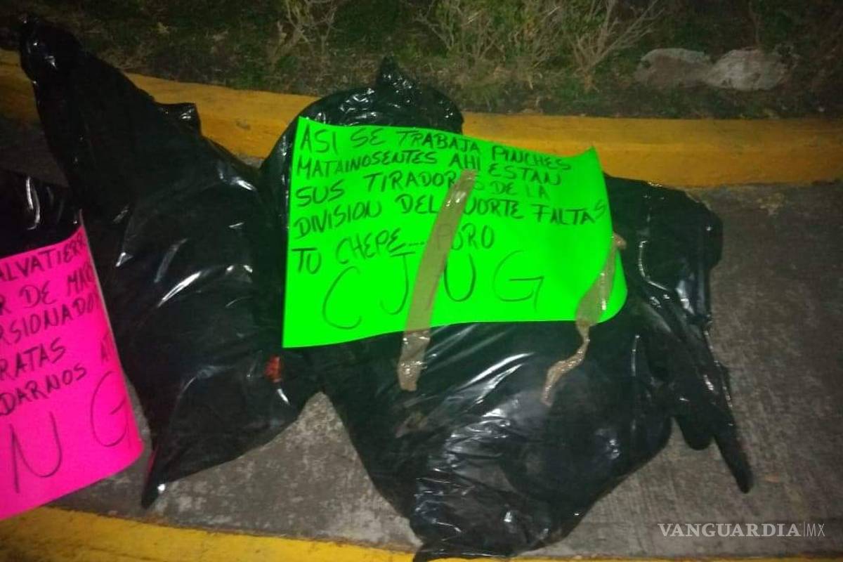 “Vamos por ustedes Chore y Maikol y Carlitos y todos los que apoyen al mugroso Marro, al gobierno le pedimos que no se meta que ya sabemos de los municipales mejor ábranse a la v*rga. Atte. CJNG”, se lee en una de las cartulinas que dejaron junto a los cuerpos descuartizados.