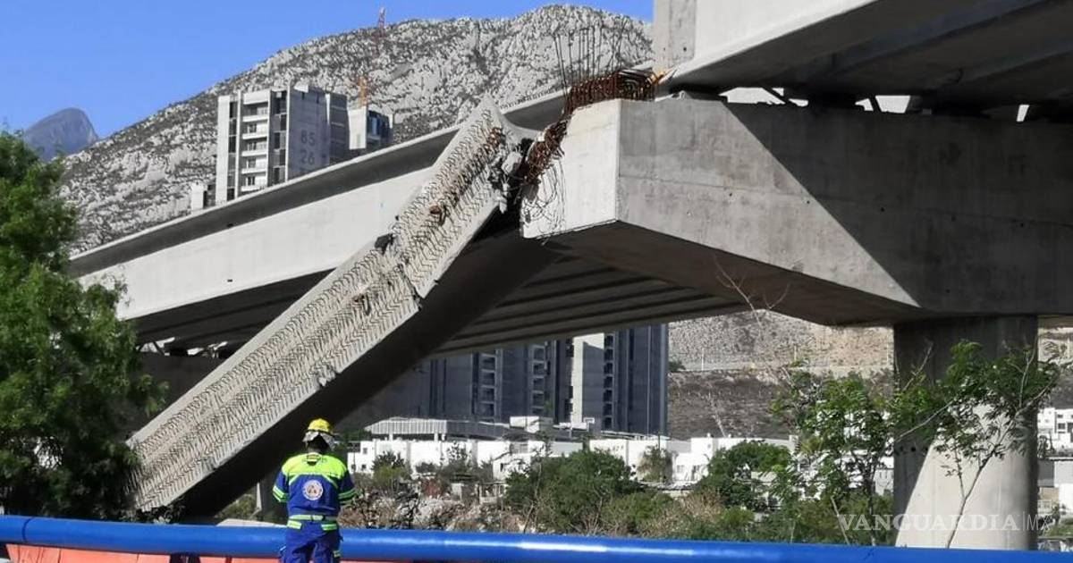 Colapsa viga de paso elevado sobre avenida Morones Prieto en Santa Catarina, NL