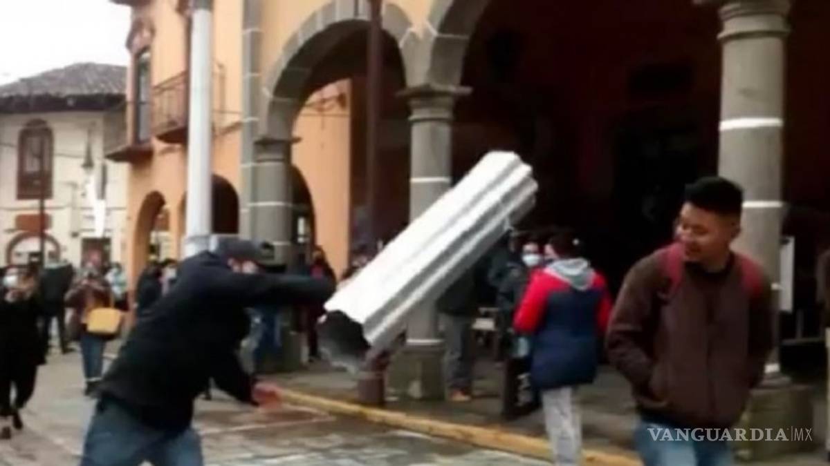 #VIDEO ?? ¡A laminazos! Así es como el grupo “Comerciantes Unidos” le recuerdan a los vecinos en Huauchinango que usen cubrebocas, arrojándoles un rollo de lámina galvanizada. pic.twitter.com/xxDigLV0UL