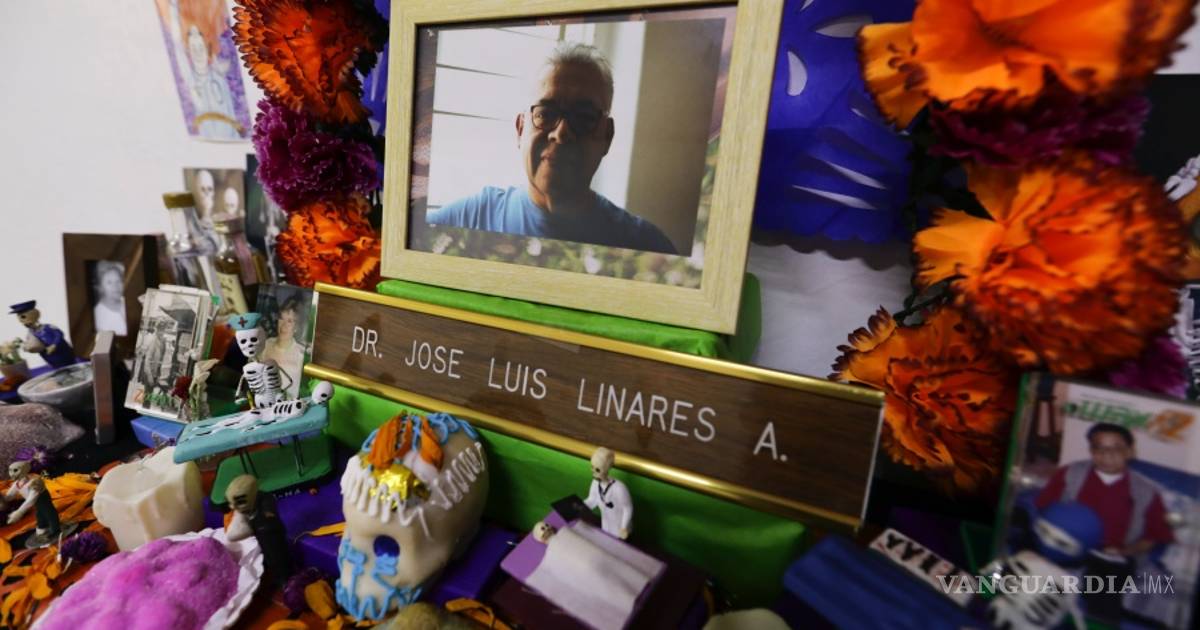 El esqueleto diminuto con cubrebocas y gorro azul tiene la mano sobre un paciente en una camilla. Al lado hay una calavera de azúcar casi tan grande como el ‘muertito médico’ y detrás, la foto del homenajeado: un hombre de 64 años, con lentes y pelo blanco que sonríe a la cámara. Debajo, un rótulo con su nombre: doctor José Luis Linares.