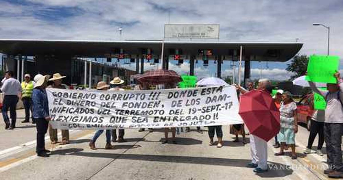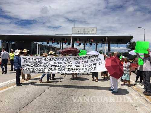 Cuernavaca, Mor.- Damnificados por el sismo del 19 de septiembre de 2017, en los municipios de Jojutla y Puente de Ixtla, bloquearon de forma intermitente la Autopista del Sol, a la altura de la caseta de Alpuyeca, para exigir a los gobiernos federal y estatal recursos para la reconstrucción inmediata de sus viviendas, porque a nueve meses del terremoto siguen viviendo a la intemperie.