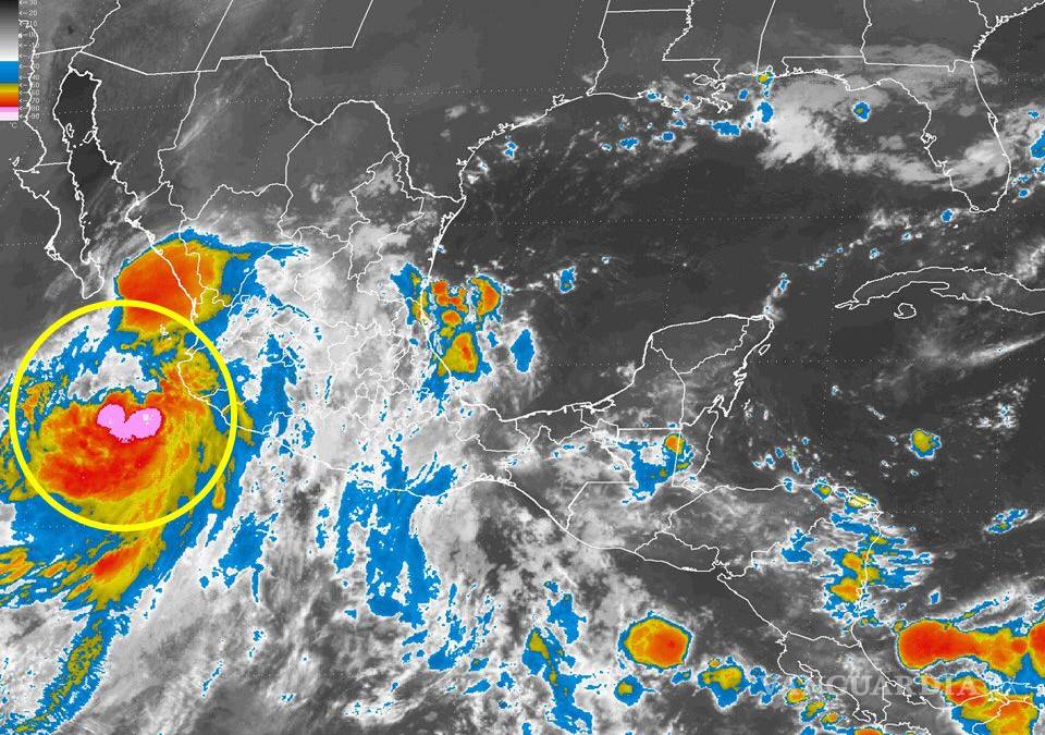 El meteoro continúa su desplazamiento hacia el nor-noroeste, aproximándose ligeramente a las costas de Jalisco (alerta amarilla, peligro moderado) y siguiendo su trayectoria hacia costas sudcalifornianas.