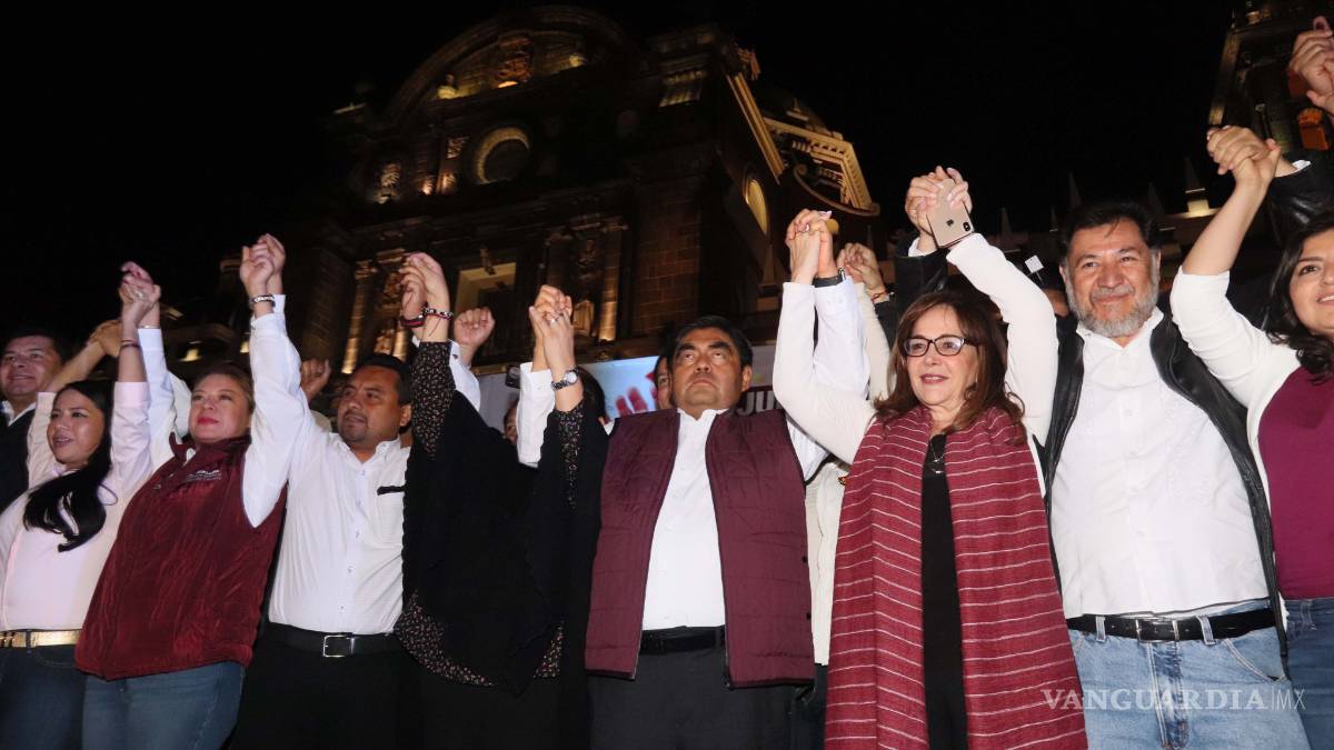 El virtual ganador de las elecciones a gobernador festejó su victoria en el zócalo de Puebla, junto a cientos de sus seguidores y una enorme manta con la leyenda: “Juntos lo hicimos posible, GRACIAS PUEBLA”.