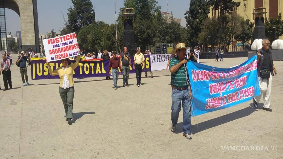 Ciudad de México.- Un grupo de al menos 80 defraudados por Ficrea marcha del monumento a la Revolución a Palacio Nacional con el objetivo de entregar una carta al presidente Enrique Peña Nieto.
