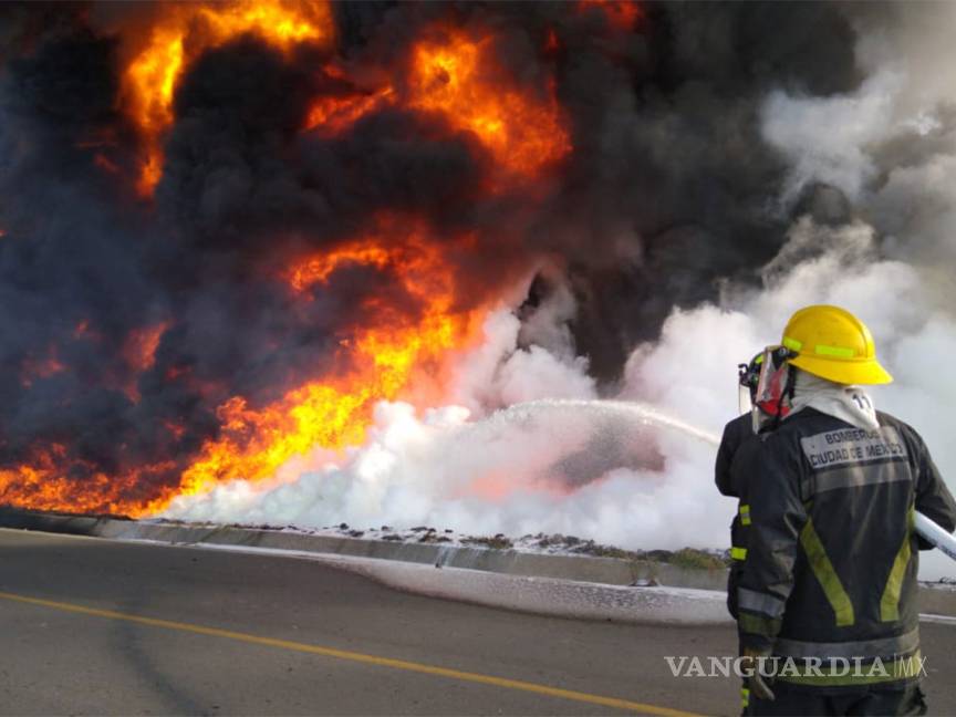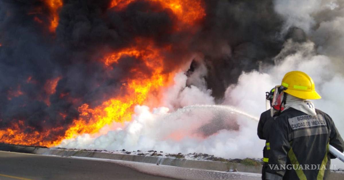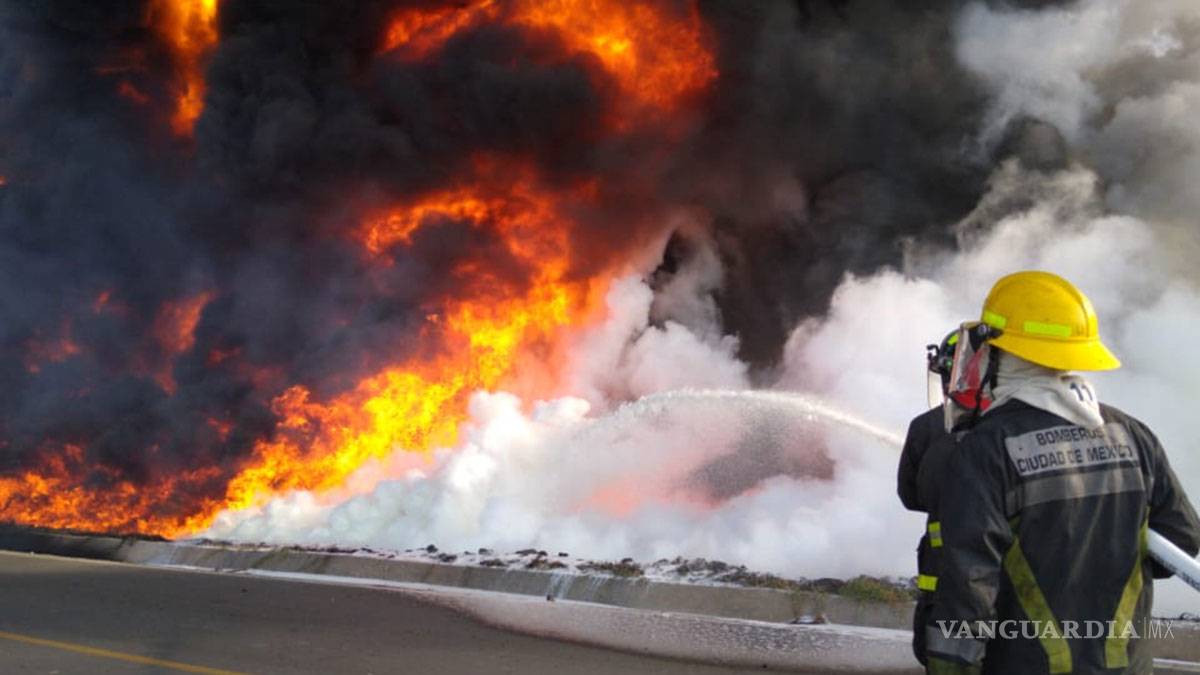 Desalojan a 200 personas por incendio en ducto de Pemex