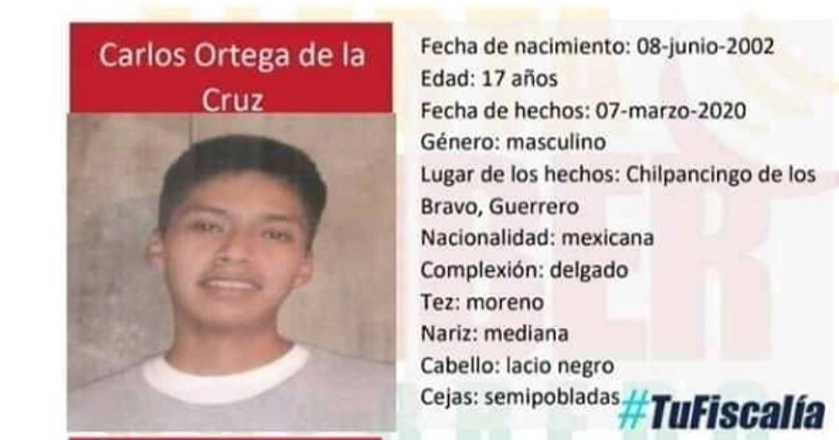 Carlos Ortega de la Cruz, de 17 años, es hijo de Melitón Ortega García, y fue visto por última vez el sábado 7 de marzo en Chilpancingo, Guerrero