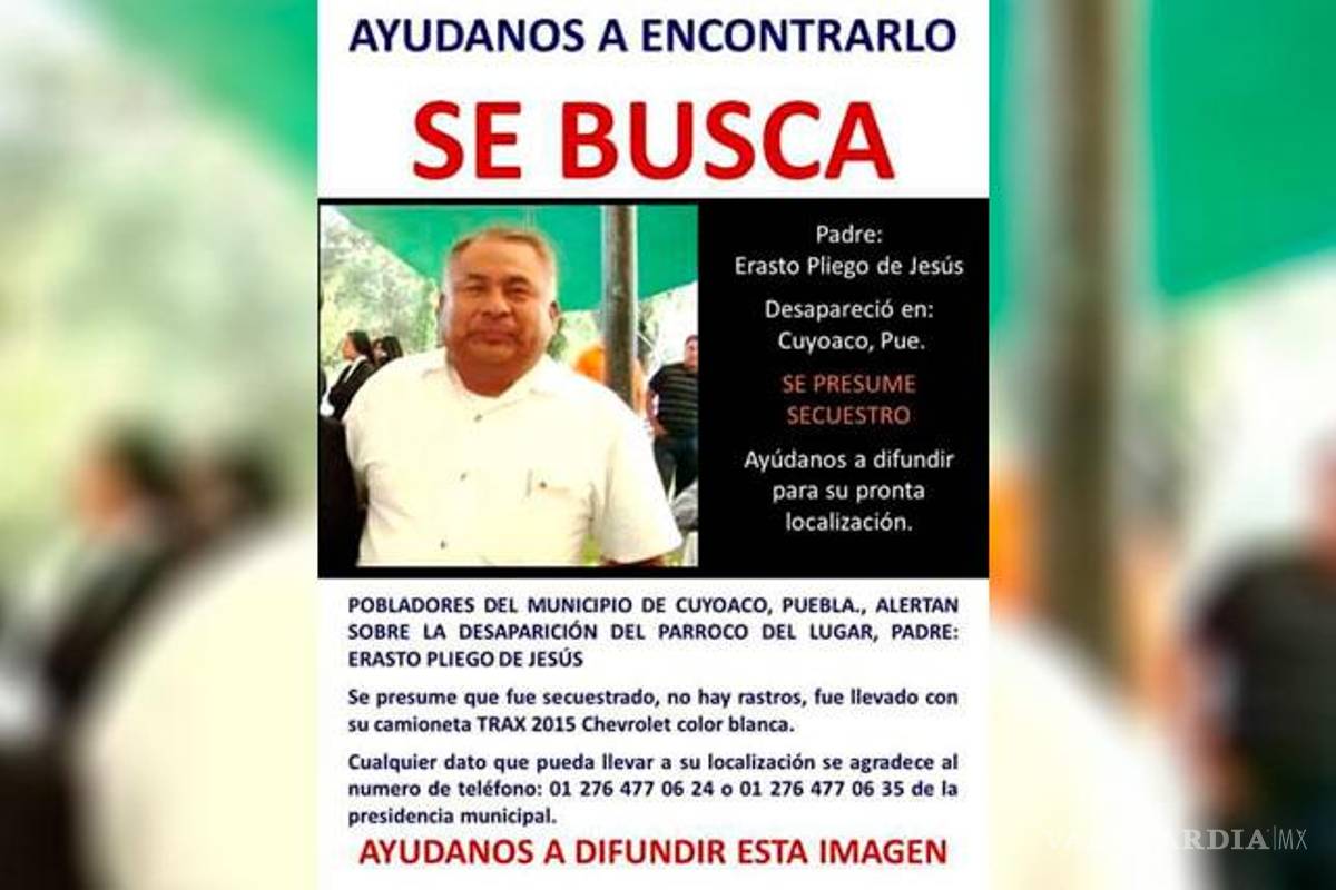 México, DF. Desde el viernes pasado, el párroco de Cuyoaco, Erasto Pliego de Jesús, se encuentra desaparecido, por lo que pobladores de ese municipio ubicado en en la Sierra Nororiental de Puebla se han dado a la tarea de buscarlo.