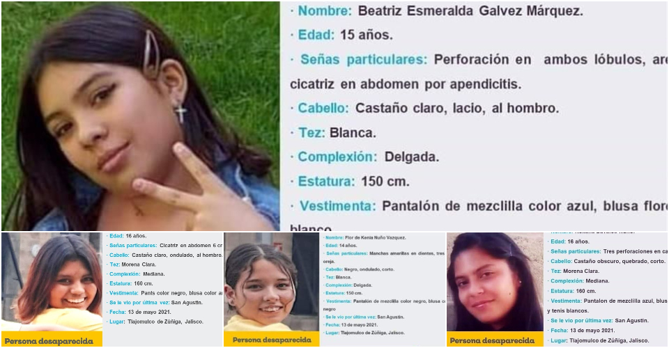 Desaparecen cuatro jovencitas en Jalisco, y de una más no se sabe nada desde abril