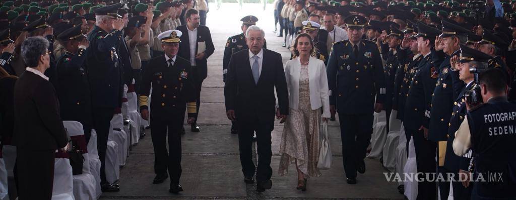 El Mandatario federal resaltó que con la Guardia Nacional y el modelo de seguridad que se ha implementado en Coahuila se garantizará la paz en el país, explicó el Presidente de México, al hablar ante militares.