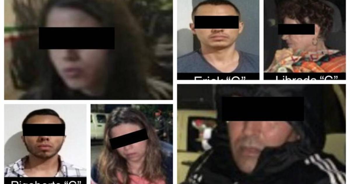 Los detenidos son Rigoberto Fructuoso "N"; Erick Alí "N", alias "Lombricita"; Librada "N"; Jorge Oswaldo "N"; Lorena "N" y Jimena Guadalupe "N".