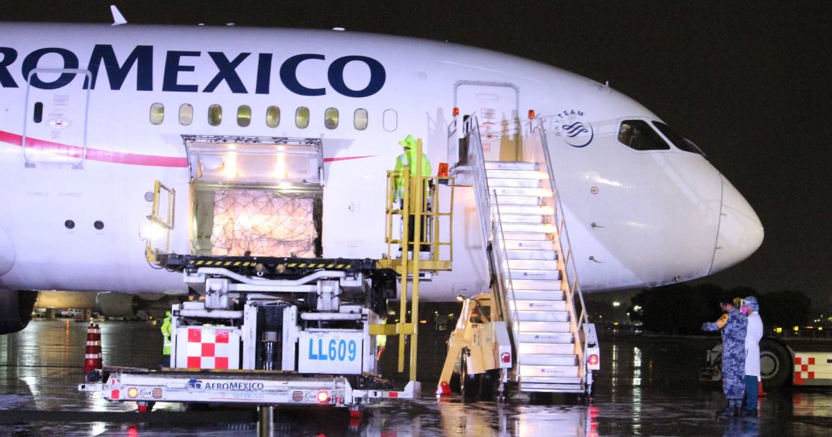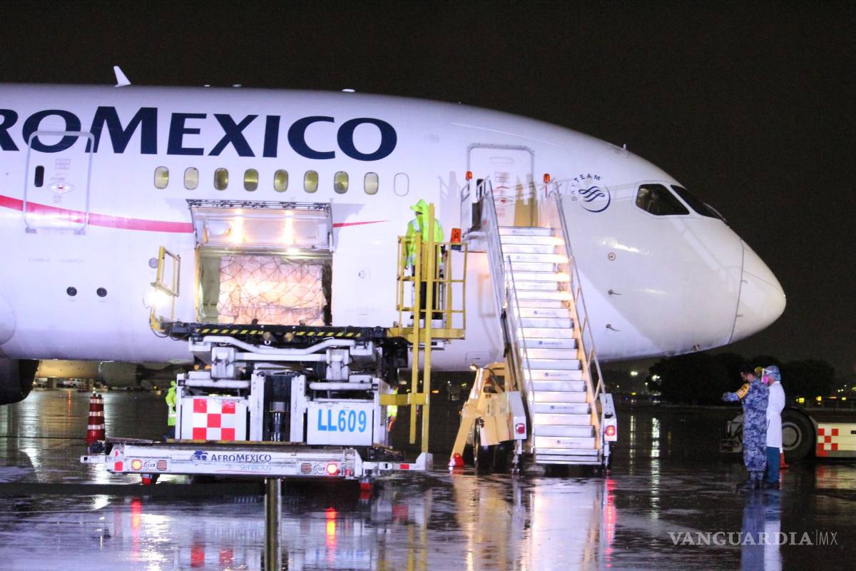 En un vuelo de Aeroméxico, procedente de Shanghai, que llegó a la Ciudad de México se transportaron 20 mil cubrebocas N-95 para entregar a personal que atiende la enfermedad del coronavirus; 100 mil cubrebocas de 2 capas, para personal que atiende otras enfermedades.