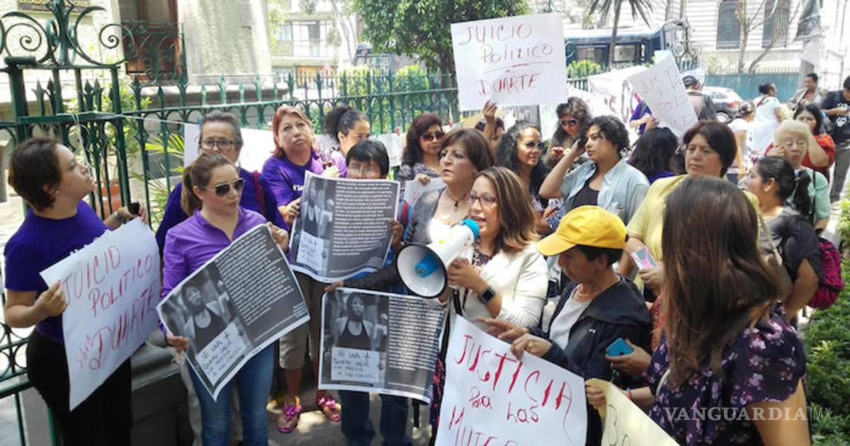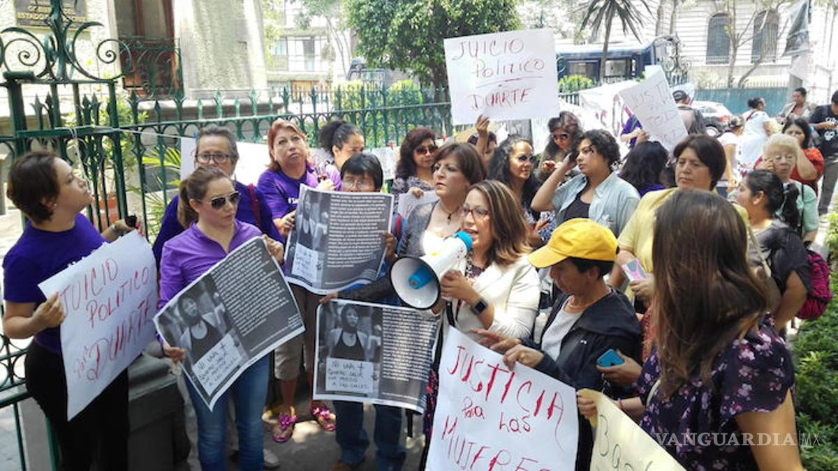 Las inconformes clausuraron de manera simbólica las oficinas ubicadas en la calle Marsella 77 de la colonia Juárez y exigieron juicio político para el Gobernador Javier Duarte de Ochoa.