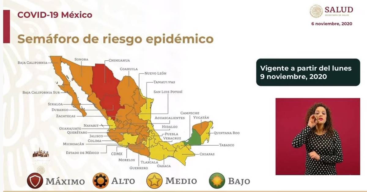 La Secretaría de Salud del Gobierno Federal presentó este viernes el Semáforo COVID-19 que estará vigente a partir del lunes 9 de noviembre y se mantendrá por las siguientes dos semanas.