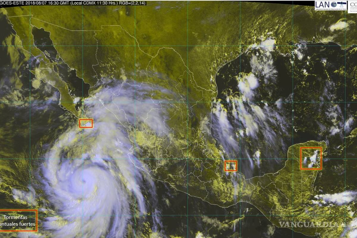Ante ello, se pronostican vientos con rachas de hasta 60 km/h y oleaje de dos a cuatro metros (m) para las costas de Baja California Sur, Sinaloa, Nayarit, Jalisco, Colima y Michoacán.