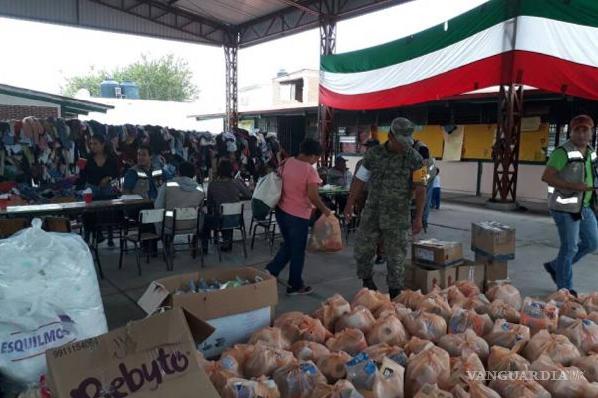 Al menos 100 elementos castrenses entregaron despensas y herramientas como carretillas, palas y picos a personas afectadas por el movimiento telúrico.