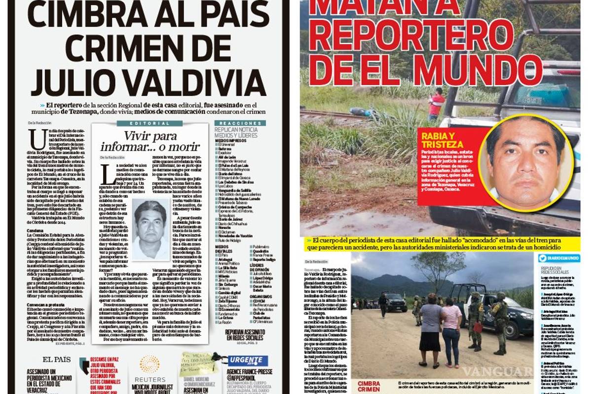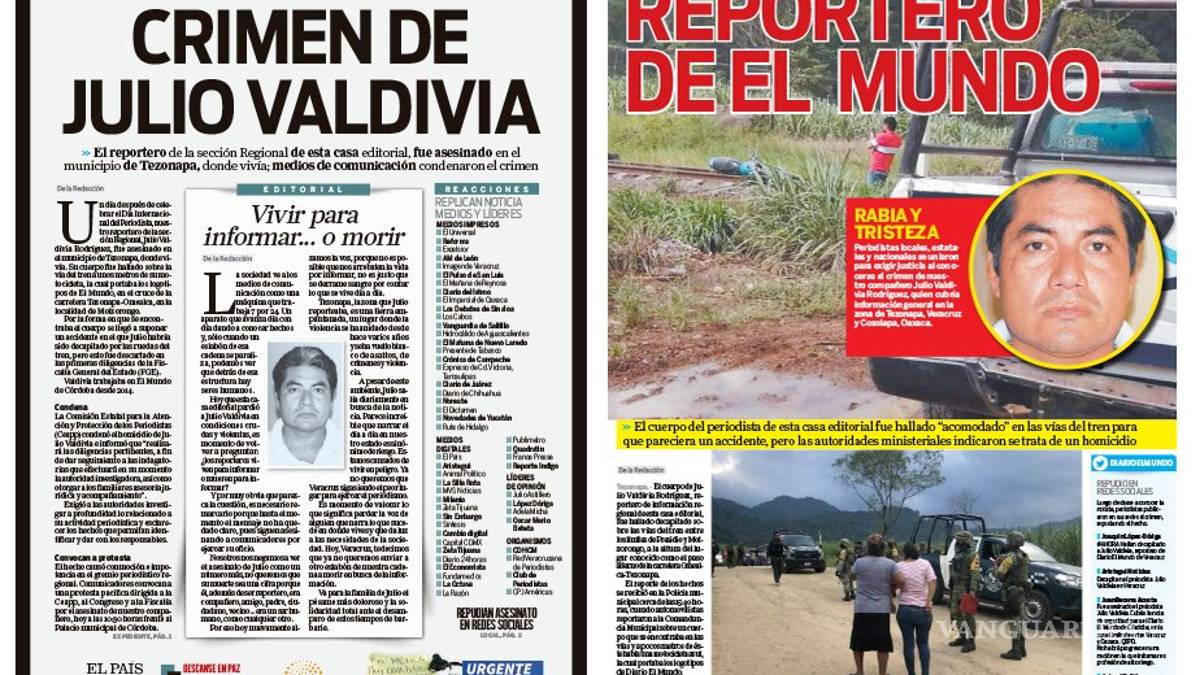 En una histórica portada, el diario veracruzano: “El Mundo de Orizaba”, le hace un homenaje a su reportero brutalmente asesinado Julio Valdivia.
