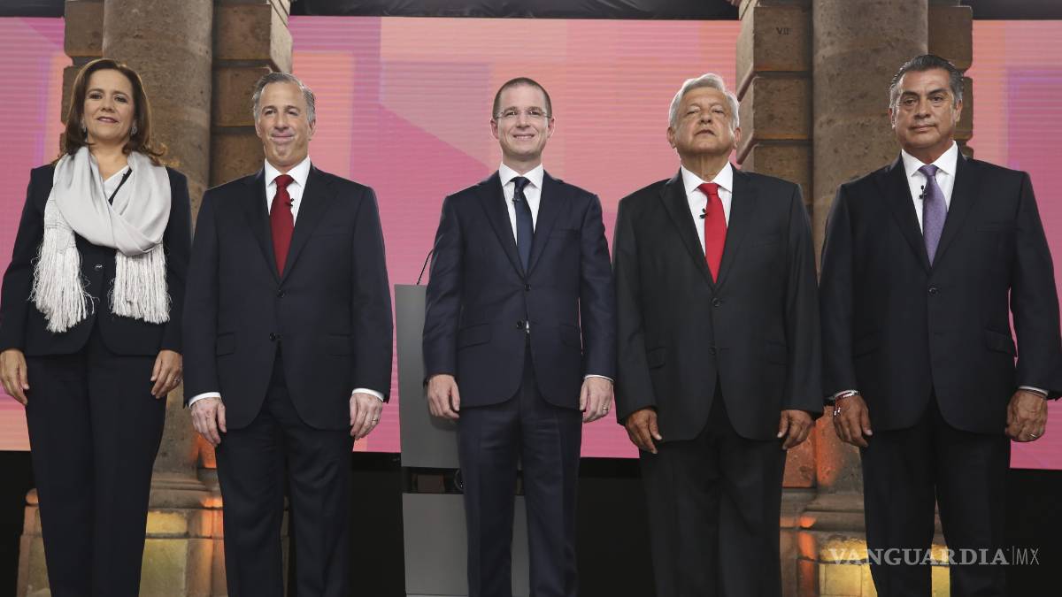 CDMX.- Los candidatos Ricardo Anaya Cortés, de la coalición Por México al Frente (PAN-PRD-MC); Andrés Manuel López Obrador de Juntos Haremos Historia (Morena-PT-PES); José Antonio Meade Kuribreña como abanderado de Todos por México (PRI-PVEM-Panal) y los independientes Margarita Zavala y Jaime Rodríguez Calderón sostuvieron en abril un gran debate.