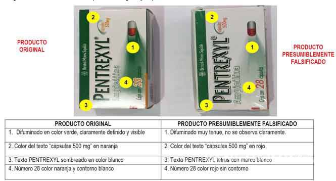 El medicamento apócrifo circula como Pentrexyl® 500mg