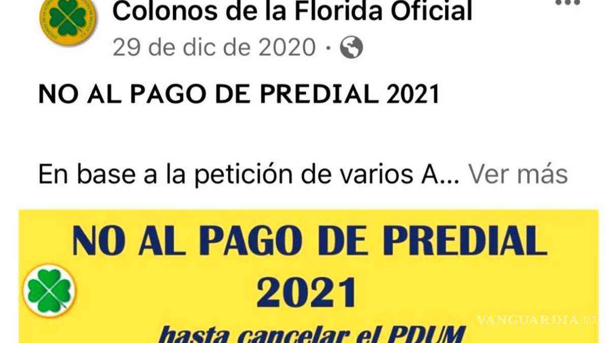 "¡No al pago del predio 2021!", es la consigna de colonos tanto de la zona residencial como de colonias de este municipio, por ejemplo en La Florida la asociación vecinal está invitando a "que de manera solidaria y voluntaria, no realicemos el pago de esta contribución, en respuesta a la aprobación de la modificación del Plan Municipal de Desarrollo Urbano de Naucalpan", afirmó Eduardo Murguía Morales, dirigente de colonos.
