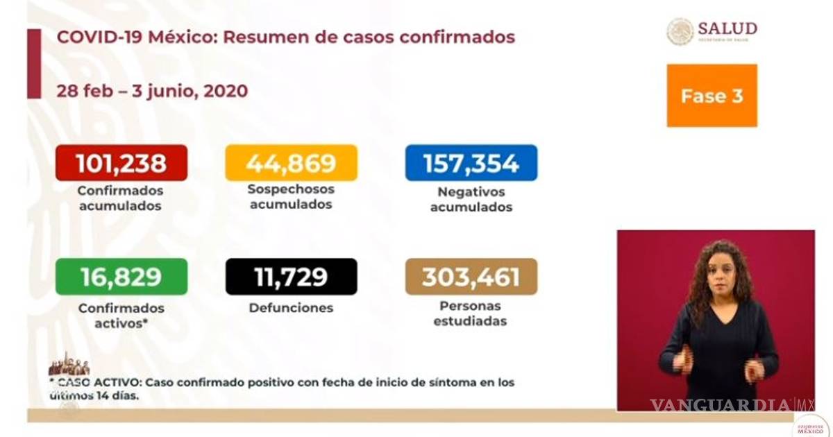 México cuenta con 101,238 casos positivos de coronavirus (COVID-19), así lo confirmó la Secretaría de Salud del Gobierno Federal.