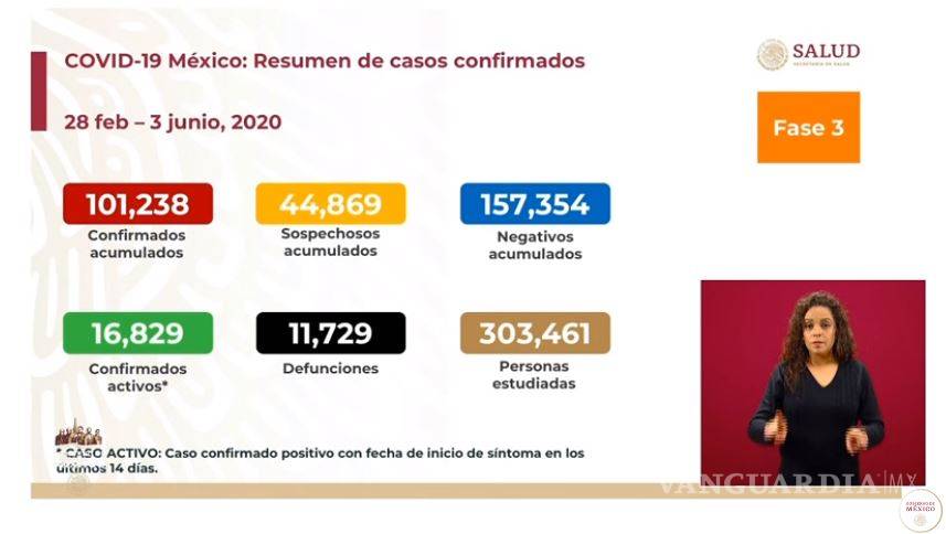 En el último reporte, del 2 de junio, fueron confirmados 97 mil 326 casos positivos, 16 mil 940 activos y 10 mil 637 defunciones.