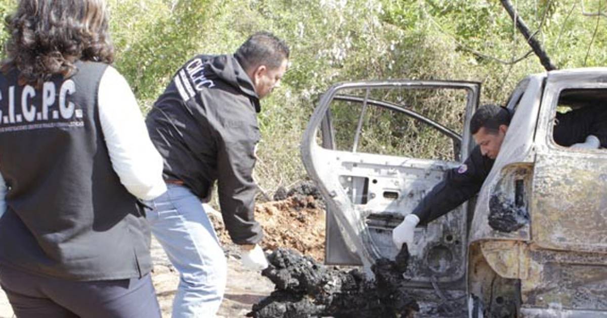 Al lugar se trasladó el equipo de criminalística de la Fiscalía General del Estado, y tras realizar la inspección del vehículo se localizó una placa de circulación, calcinada, con número SZ1519B del Estado de Quintana Roo, y en la batea un resorte de colchón, y los cuerpos humanos carbonizados, lo que dificultará la identificación. Todos tenían las manos amarradas con cintilla hacia atrás.