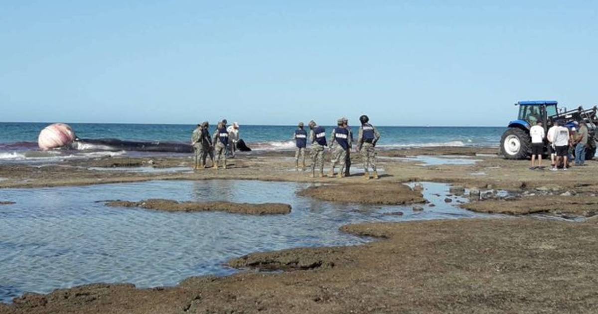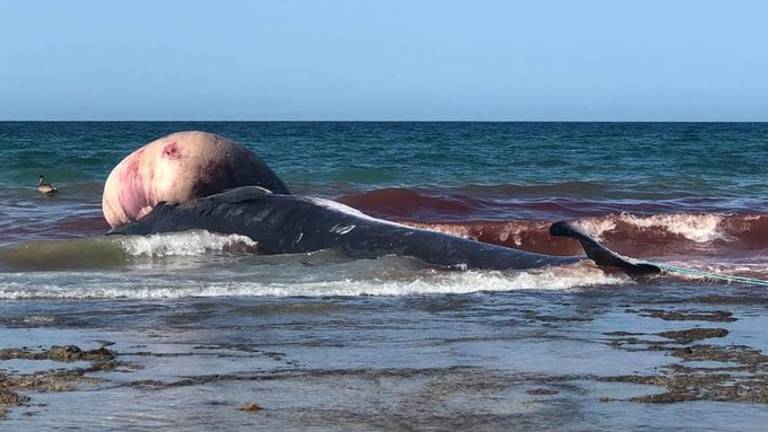 El cuerpo sin vida de la ballena de unos 10 metros y un peso de 5 toneladas, fue localizada a las 6:30 de la mañana en la orilla del mar.