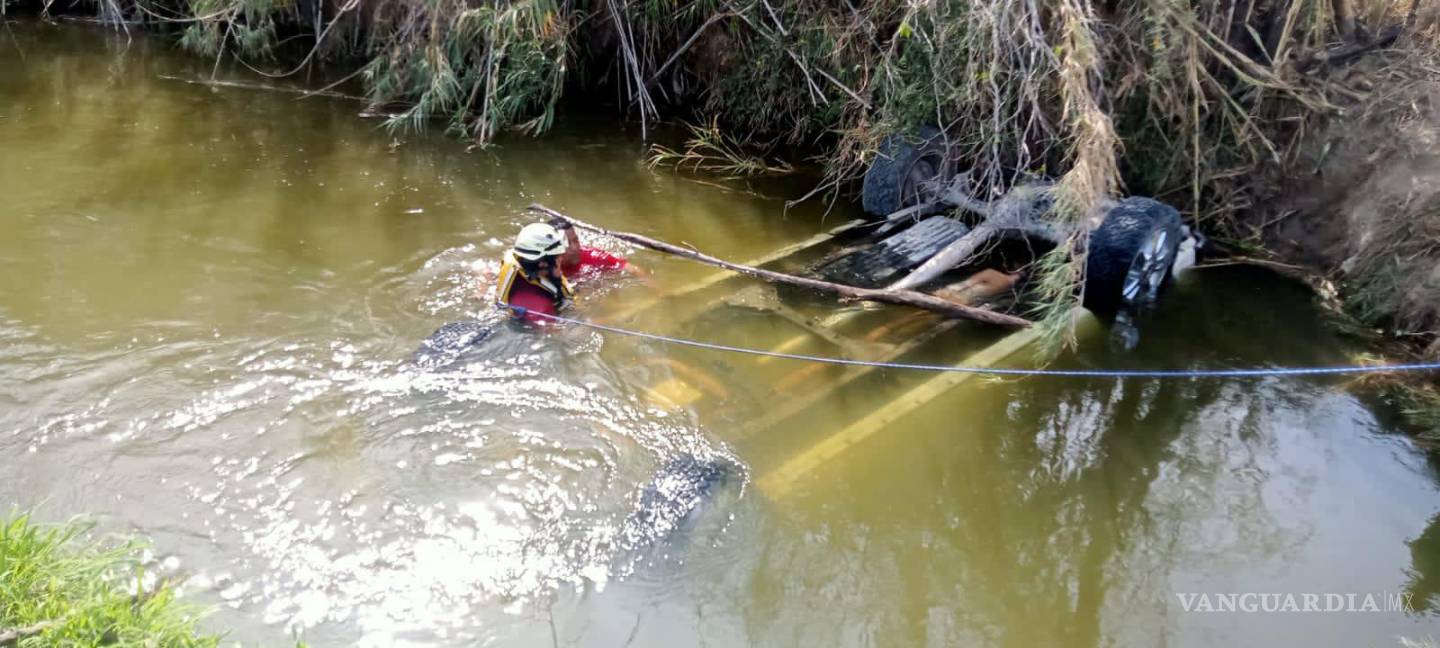 Como primer respondiente acudió Tránsito Municipal de Pesquería que al llegar encontró la camioneta sumergida en el agua. Es una unidad Chevrolet Silverado en color blanco con placas de circulación de Nuevo León.