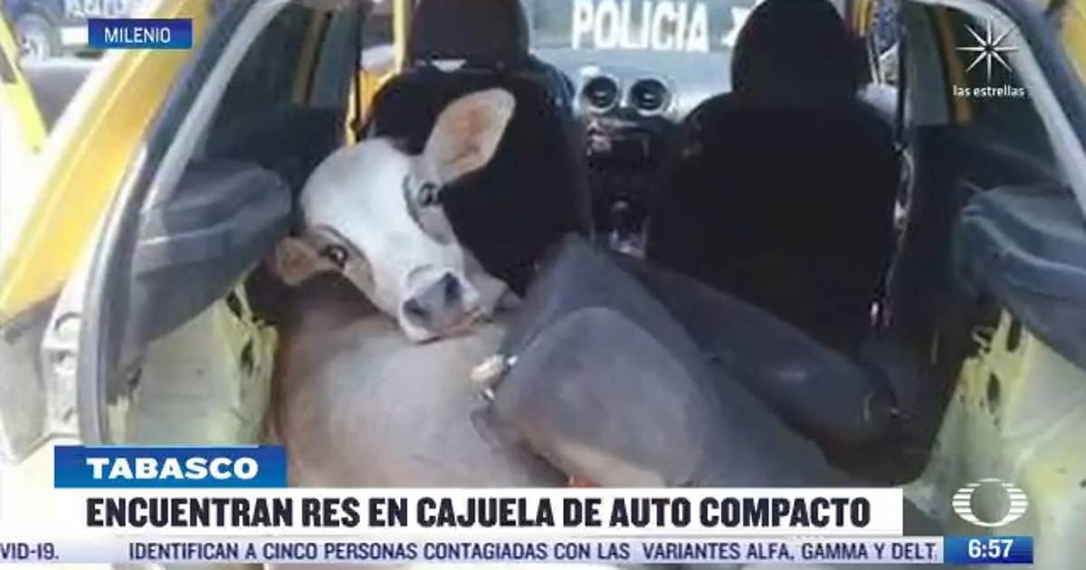 Policías de Tabasco colocaron un retén en la carretera para localizar armas o drogas, pero mientras inspeccionaban un automóvil encontraron que en la cajuela escondían una vaca. Indican que el animal fue reportada como robada, por lo que venían de cometer el atraco.