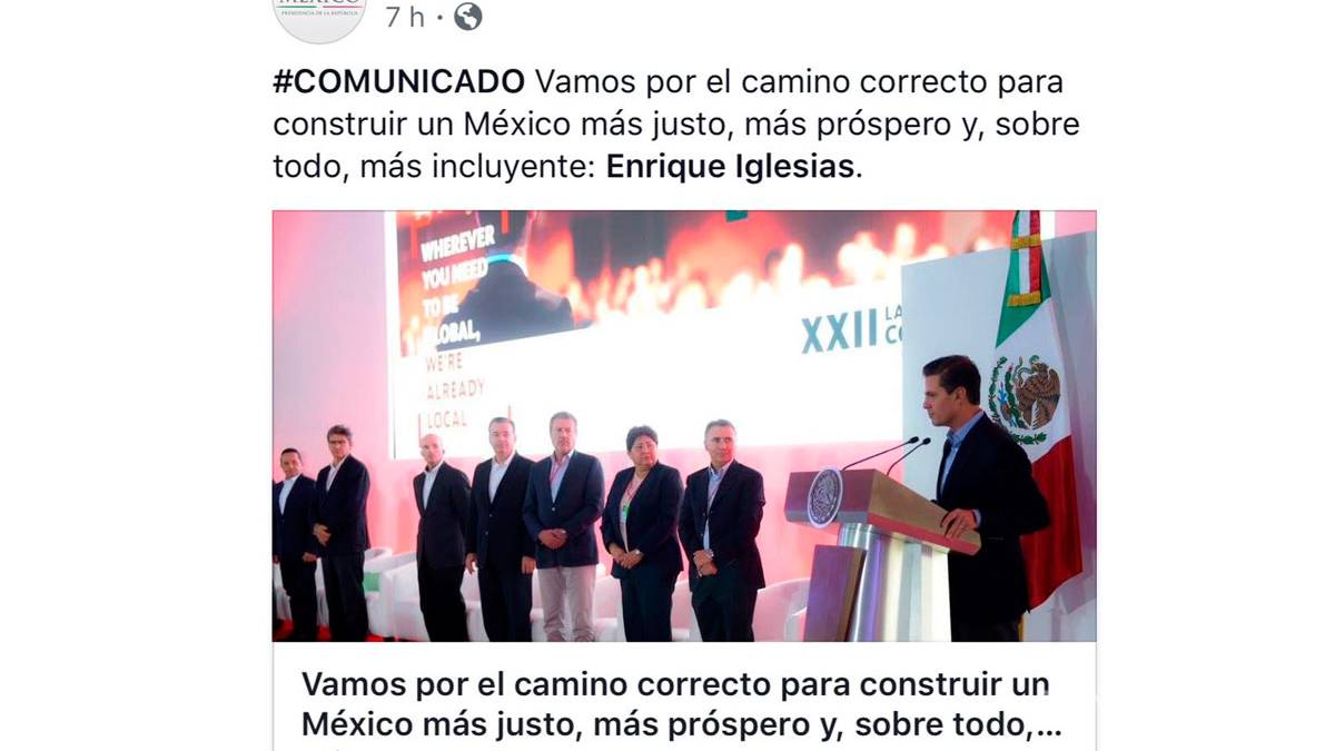La página de Facebook de la Presidencia de México dice que el presidente es... Enrique Iglesias pic.twitter.com/LoKQdlXOnk