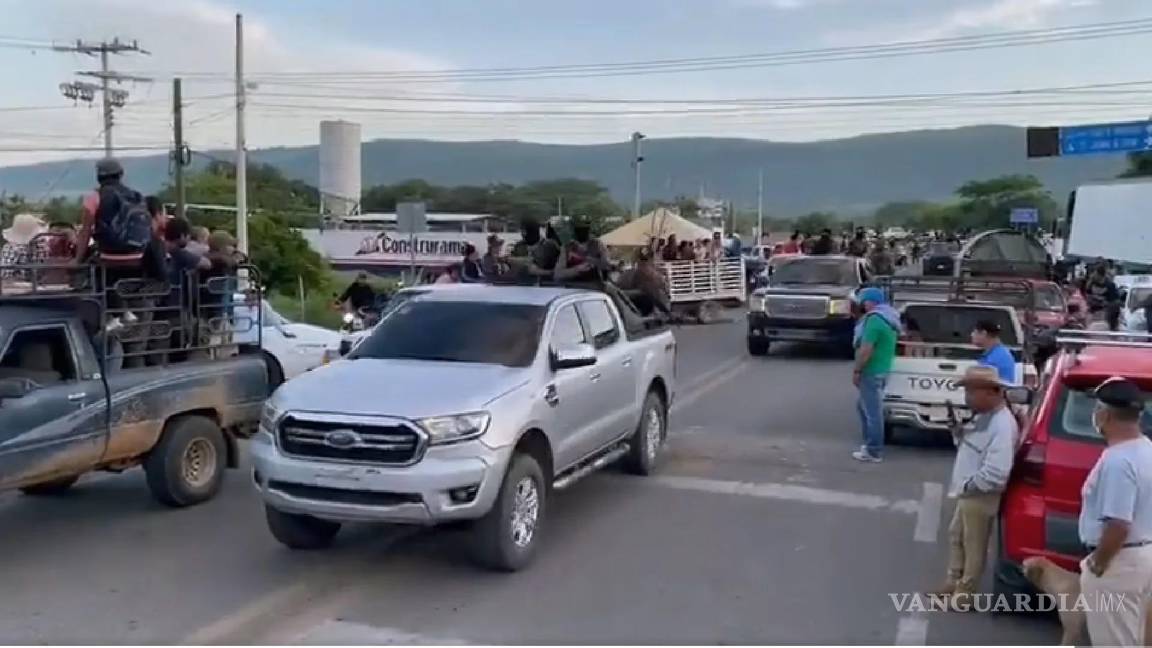 Entre gritos de ¡Puro Sinaloa!, aplausos y chiflidos, pobladores que mantenían un bloqueo se replegaron a orilla de la carretera para ver desfilar a integrantes del Cártel de Sinaloa, a bordo de camionetas en la vía que va de la localidad San Gregorio Chamic a Frontera Comalapa, Chiapas, frente a Guatemala.