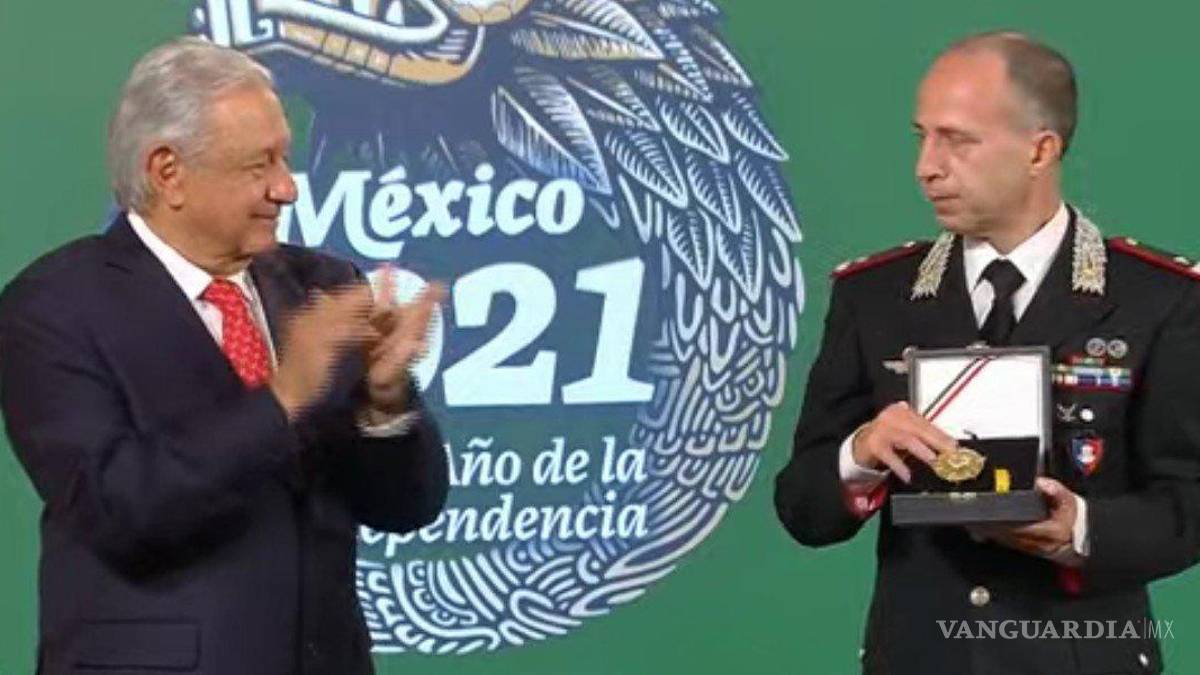 Entrega AMLO condecoración de la Orden Mexicana del Águila Azteca a general italiano