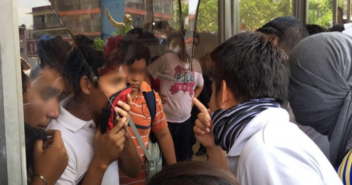 Tras argumentar que uno de sus compañeros fue agredido, estudiantes rompieron cristales de la puerta.