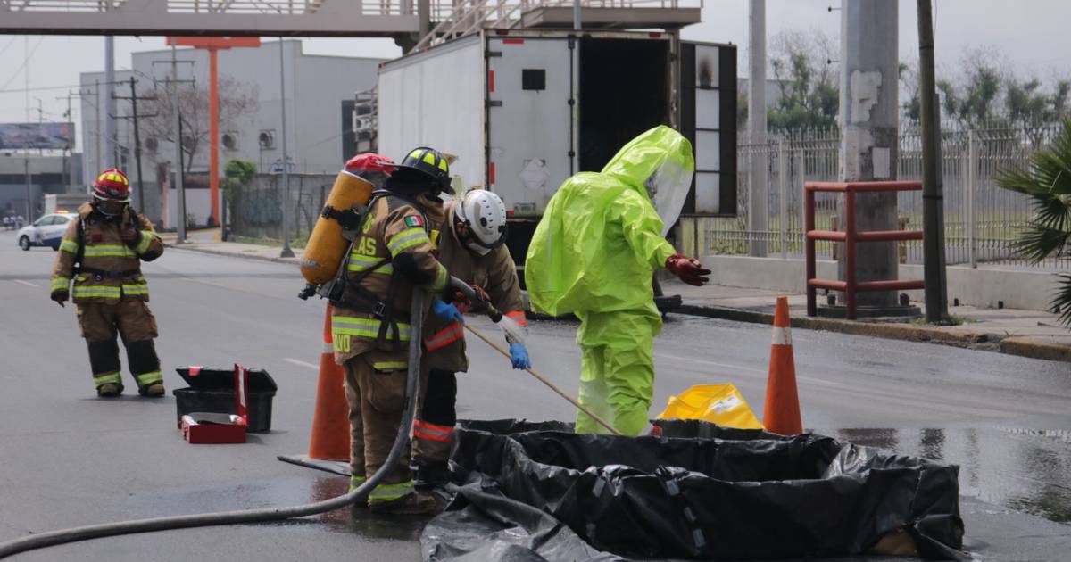“Se llevan a cabo acciones para contener un derrame de ácido clorhídrico industrial al 30 por ciento al interior de una caja seca, lo transportaba un vehículo”, compartió el funcionario estatal.