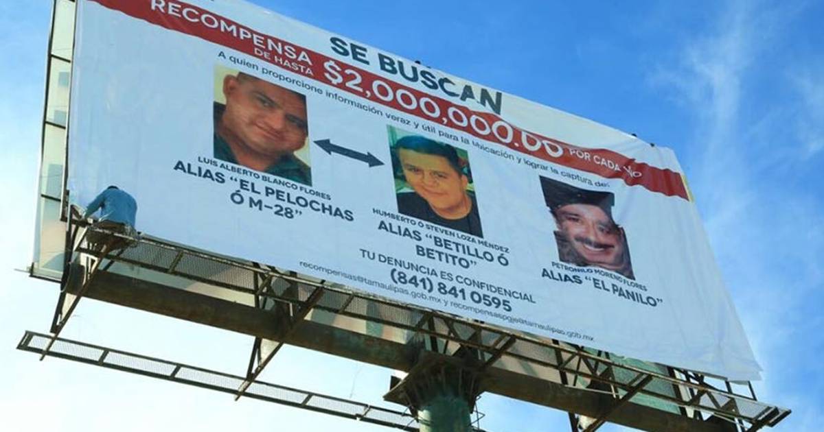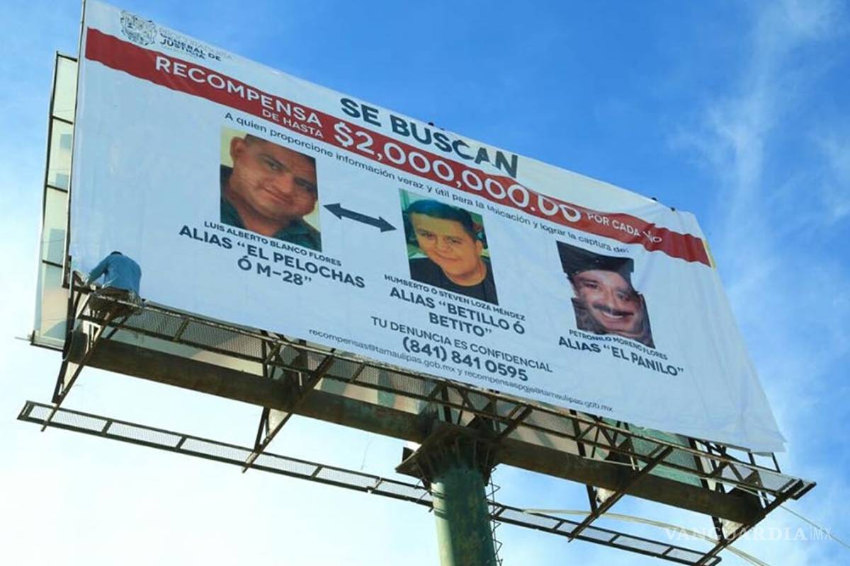 La recompensa que se ofrece es de 2 millones de pesos por cada uno de los tres presuntos líderes identificados en la estructura criminal que operan en Tamaulipas.