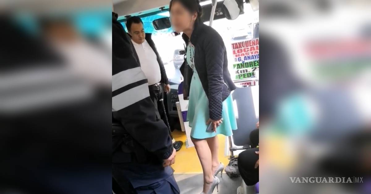 La mujer, quien en redes sociales fue apodada como 'Lady Tacones', calificó al chofer de 'machista' por negarle bajar de la unidad por donde ella quería y continuó discutiendo con las personas que le sugerían acatar las indicaciones del chofer.