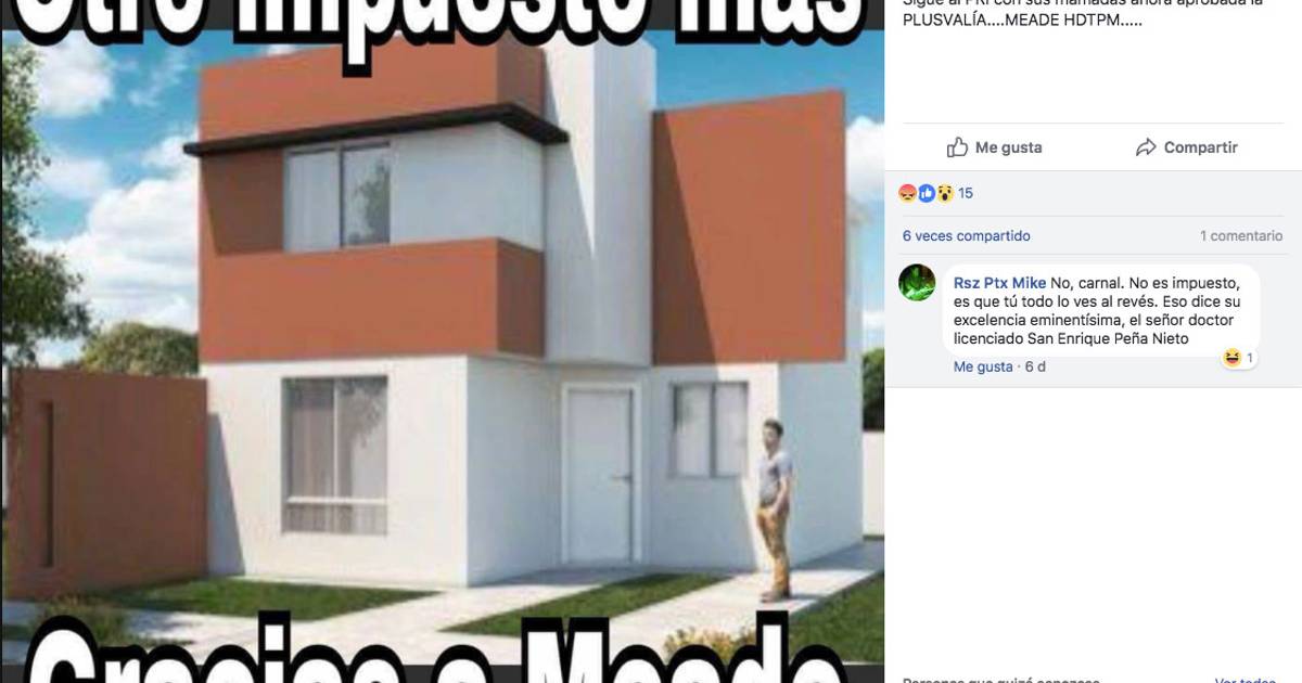 Mientras desviaron la atención del pueblo con el gasolinazo, HOY el Congreso aprobó una Ley de impuesto, sobre la “plusvalía “ de bienes inmuebles (...) ¿ qué nos espera ? ¿que le espera a nuestros hijos ?... Despierta si eres mexicano y amas a tu país... ¡¡¡ haz algo !!!... comienza por publicar esto como protesta hasta hacerlo viral, o incluso dejar ver tu inconformidad como ciudadano.... PIENSA.... ¡¡¡¡¡ Y ACTÚA !!!!!”.