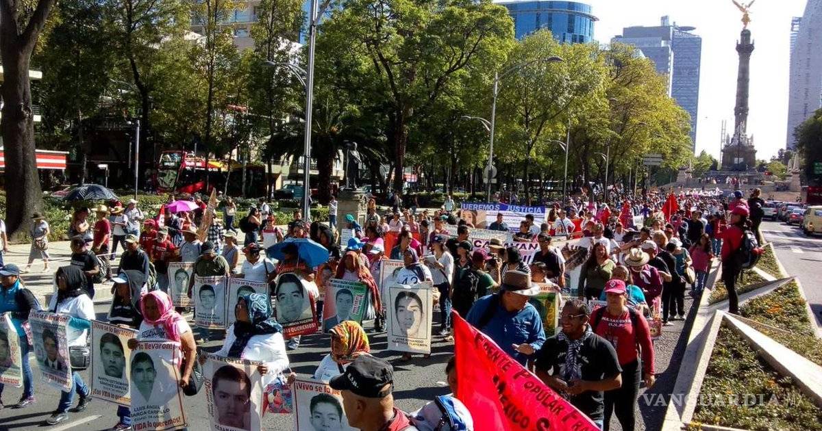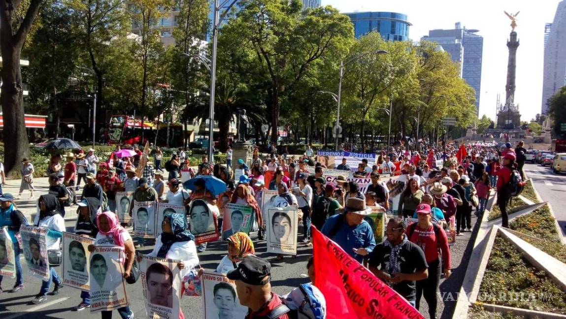 La caminata partió al filo de las 17 horas del Ángel de la Independencia y llegará al Hemiciclo a Juárez, donde los familiares de los normalistas realizarán un mitin.