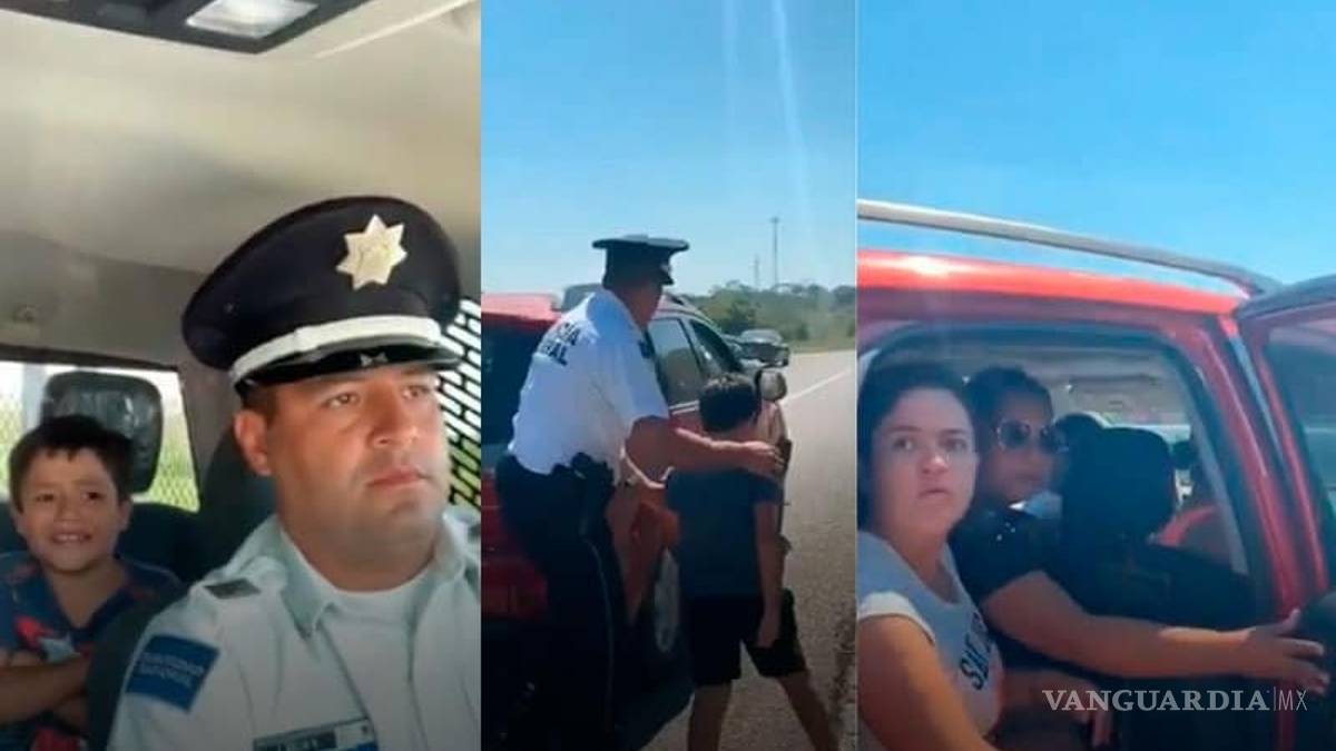 "Yo le dije a mi mamá, ma´tengo sed, y fui a comprar pero había una 'colóta' en la fila del Oxxo", dice el menor y los policías tratando de tranquilizarlo le dicen que ya van a alcanzar a su familia.