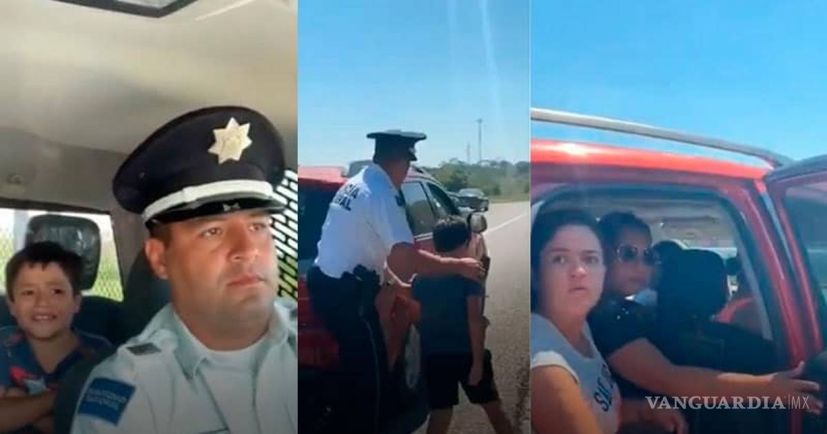 Al ver al niño solo, unos elementos de la policía federal se ofrecieron a alcanzar la camioneta en la que viajaba la familia del menor.