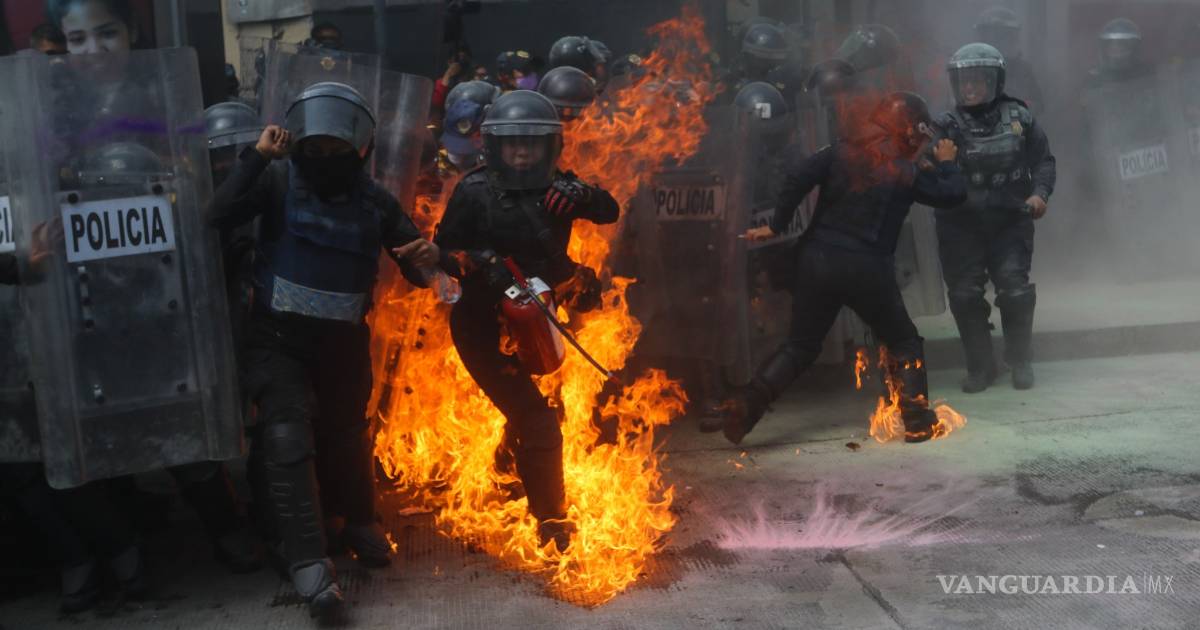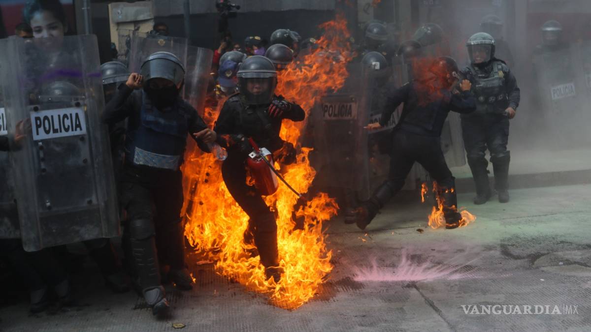 CDMX.- Durante las manifestaciones de feministas a favor del aborto de ayer, agentes de la policía capitalina dividieron contingentes y encapsularon a sus integrantes con quienes tuvieron diversos enfrentamientos.