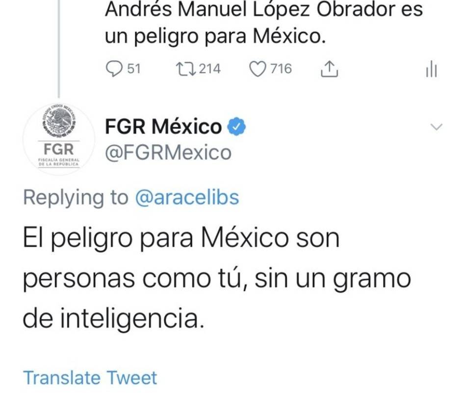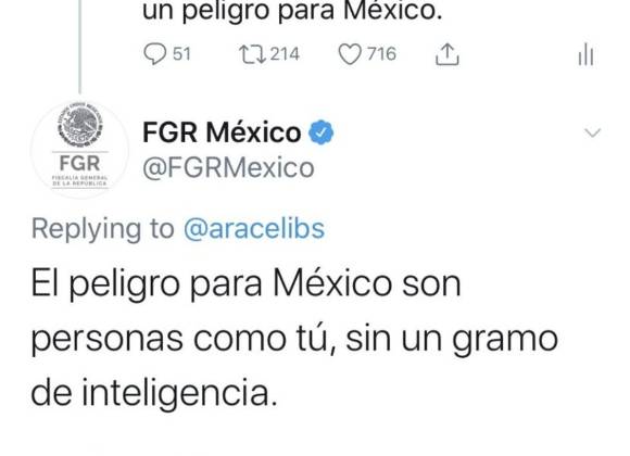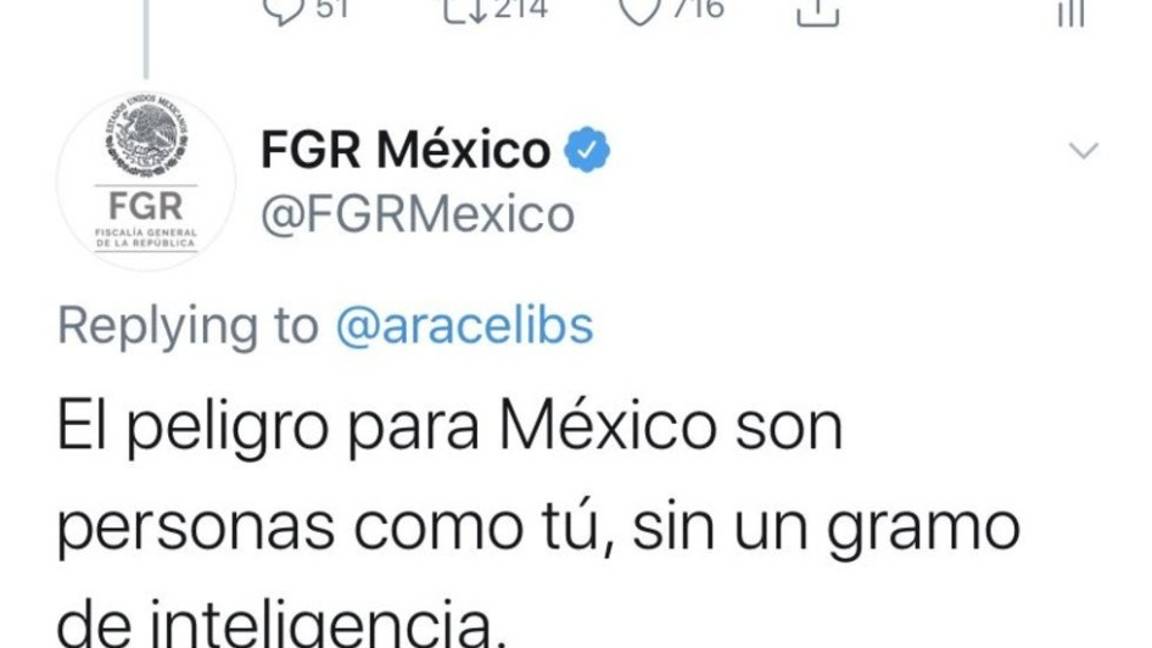 "El peligro para México son personas como tú, sin un gramo de inteligencia", tuiteó la Fiscalía.