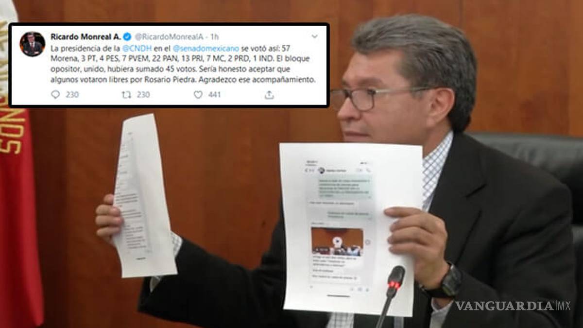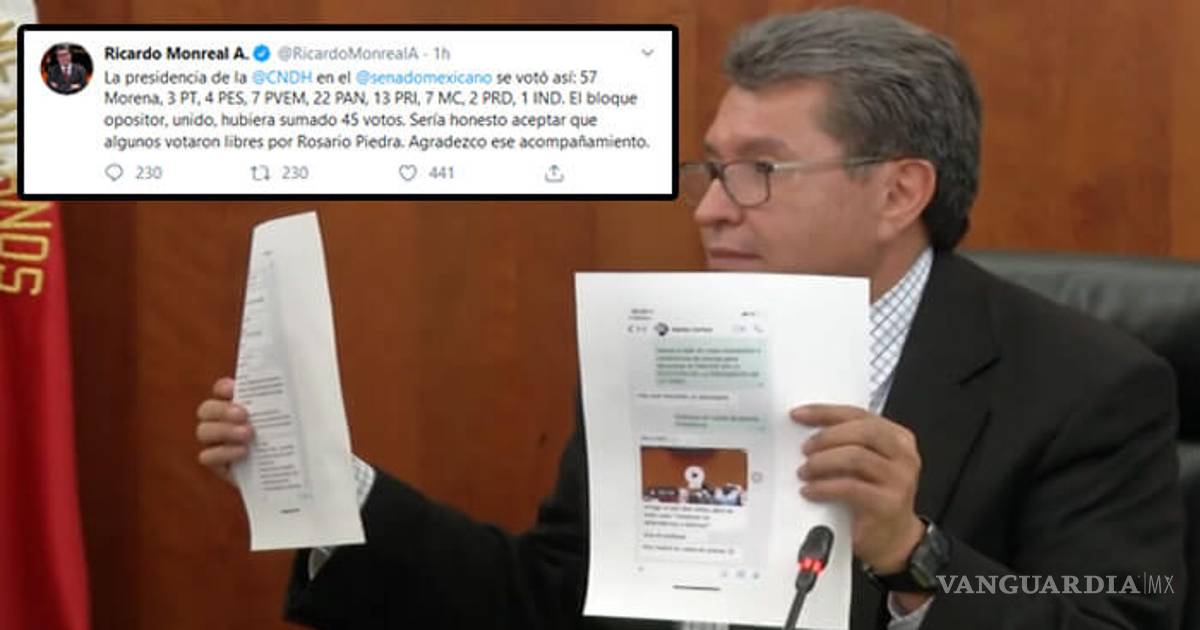 “Me pasaron un pantallazo de la conversación que tuvo Marko Cortés con (Mauricio) Kuri. Dice cómo fue catastrófico, qué grave. Dice Mauricio, un favor senadores, está circulando en su grupo el chat, en redes un video de Monreal, les pedimos por favor no compartirlo en sus redes oficiales porque no es así y nos debemos concentrar en el argumento de que se robaron dos votos como se demostró en la conferencia de prensa.