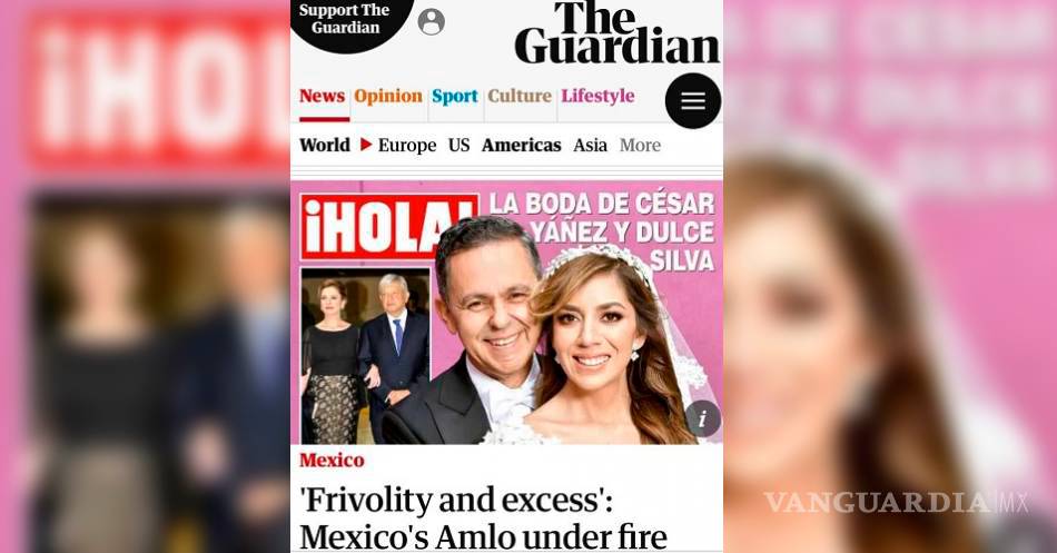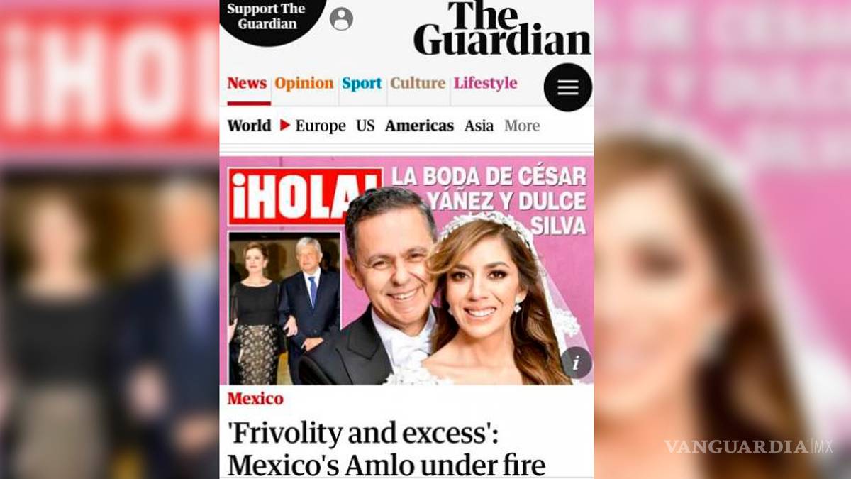 Es el caso del diario británico The Guardian, que rescata la portada de la revista "¡Hola!" para el artículo de David Agren titulado: "Frivolidad y exceso: AMLO bajo fuego por la lujosa boda de un colaborador".