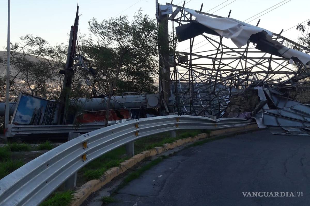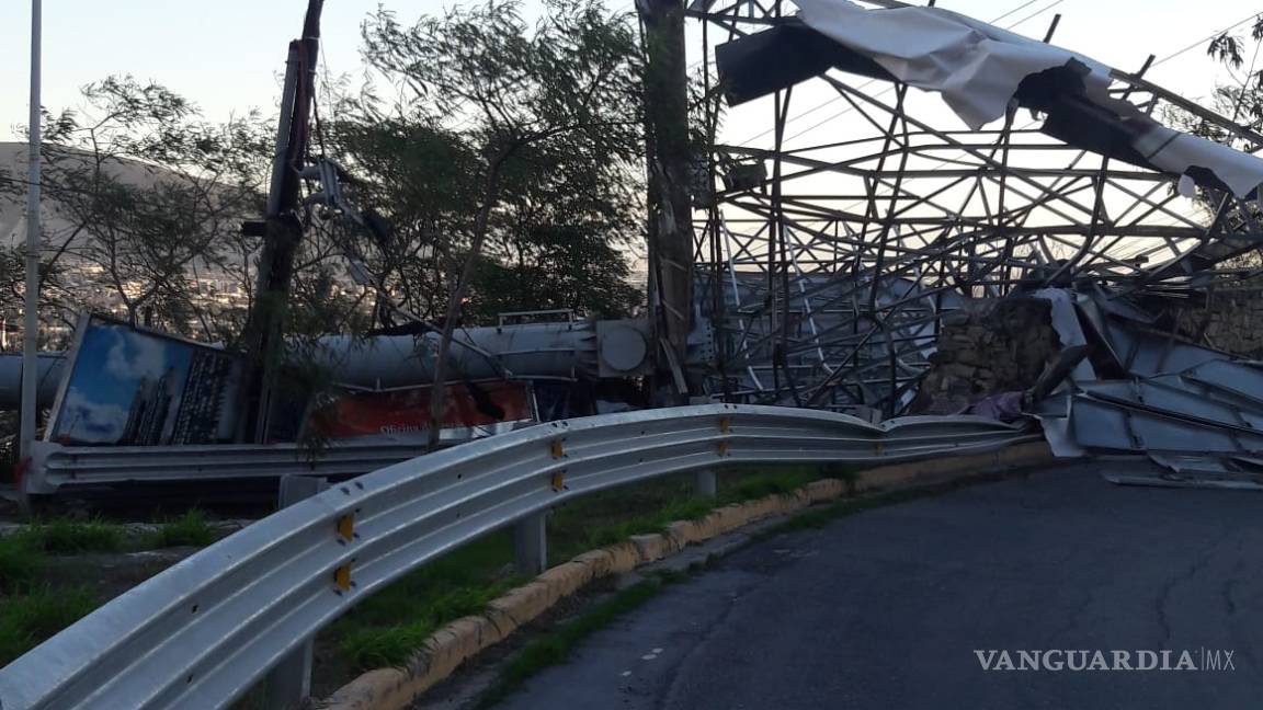 Las fuertes rachas de viento que se registran en Monterrey y su área metropolitana dejaron daños como la caída de árboles, panorámicos, fallas en el suministro de energía eléctrica y semáforos.