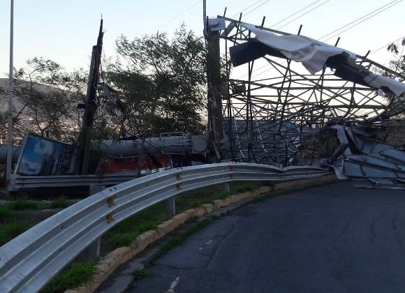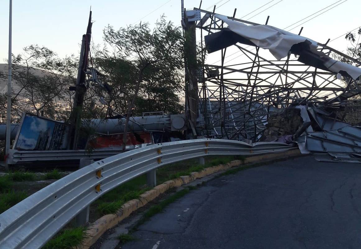 Por ejemplo, en la colonia Colinas de San Jerónimo en Monterrey la caída de un espectacular bloqueó la entrada a la colonia ya que obstruyó varios carriles. Tránsito municipal determinó cerrar la circulación para evitar accidentes.