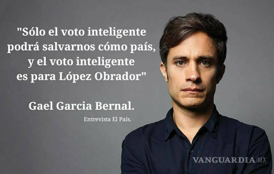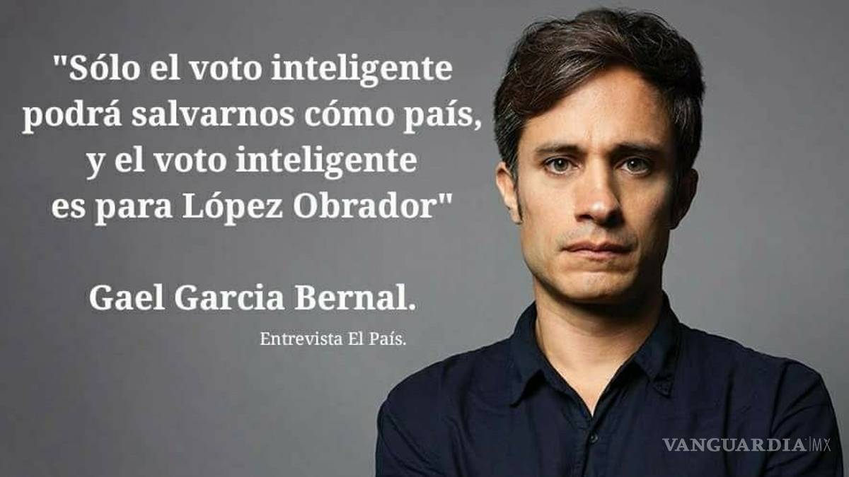 El actor mexicano Gael García Bernal nunca dijo que “sólo el voto inteligente podrá salvarnos como país y el voto inteligente es para López Obrador”, como señala una imagen difundida en redes sociales.