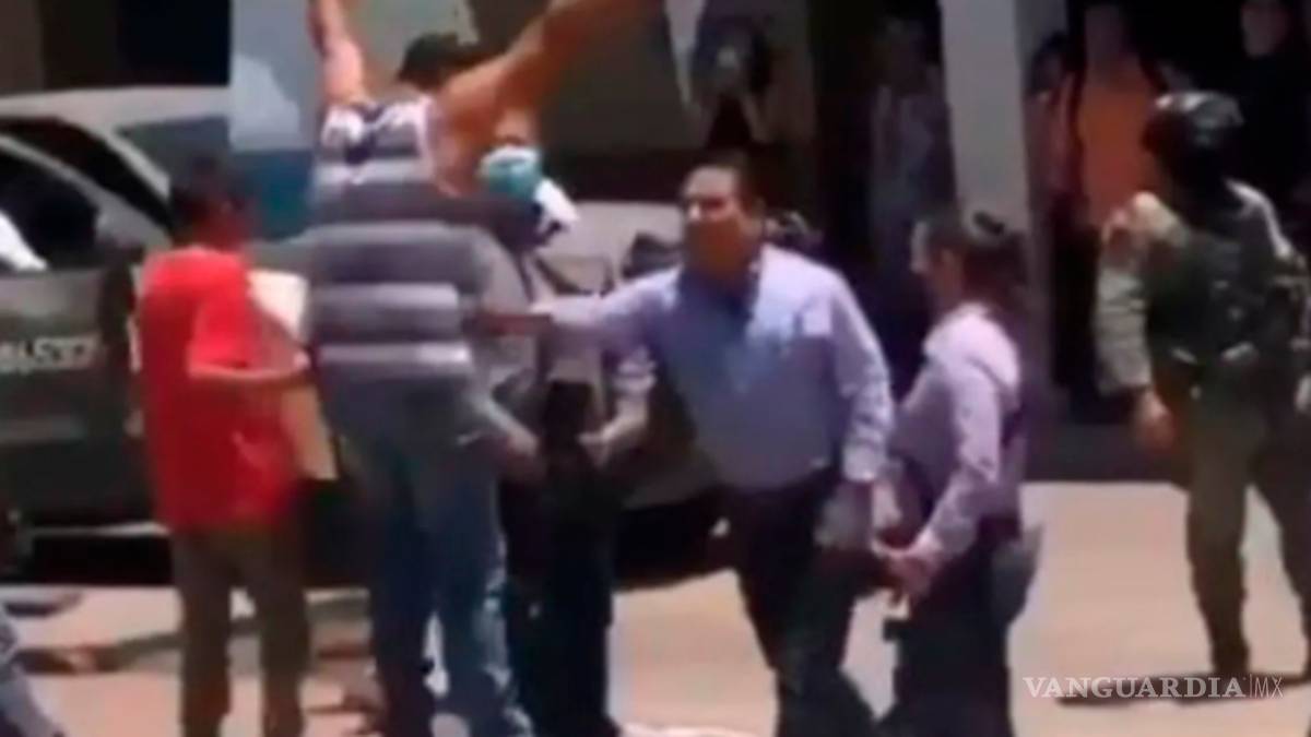 En un video que circula en redes se puede observar al gobernador de extracción perredista descender de un vehículo militar y dirigirse directamente hacia una persona que portaba una pancarta, a quien empuja de manera ruda