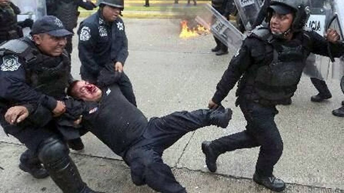 Golpean brutalmente a policía en Acapulco tras protesta